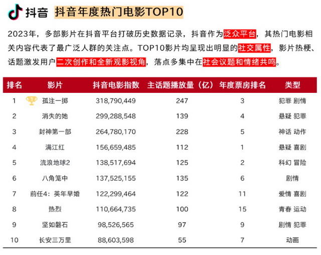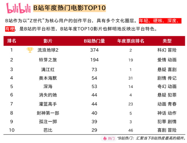 灵活度已然天差地别,更值得担忧的是,在好莱坞长期做不好短视频营销的影响下,短视频观众对好莱坞大片的认知程度和兴趣程度会越来越低,陷入恶性循环。根据猫眼报告,抖音年度热门电影TOP10全部为国产片,而B站年度热门电影TOP10尚且有4部进口片,其中2部为好莱坞电影。