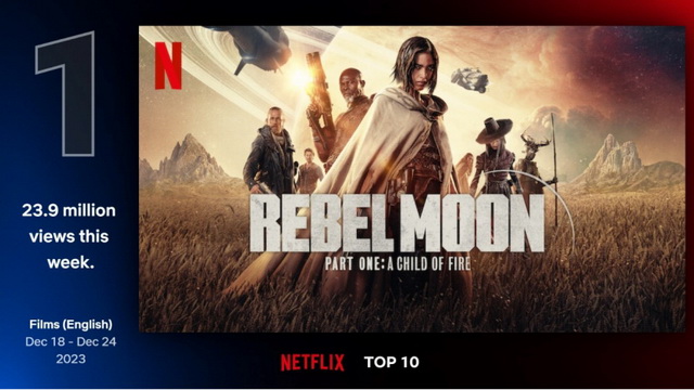 12月22日,《月球叛军》在Netflix正式上线。据Netflix发布,在首周期间,《月球叛军》前三天吸引了2390万次观看,共录得5410万小时的播放时间。具体来看,《月球叛军》在93个国家都进入前十名,更在其中43个登顶观看榜首。