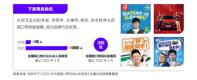 根据《脱口秀营销白皮书》显示,2009年中国内地最早的脱口秀俱乐部外卖俱乐部成立,直到2016年全国脱口秀行业从业人员都不足100人,而在2021年,脱口秀演员达到了10000人,俱乐部跃升为179家(截止2022年5月)。