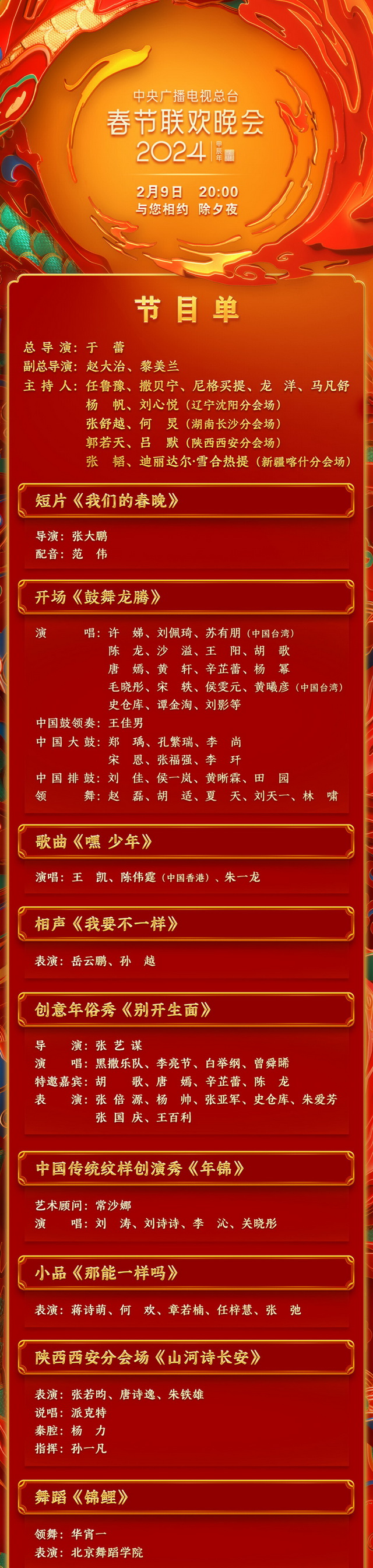 春满中华,福到万家。中央广播电视总台《2024年春节联欢晚会》节目单正式发布。