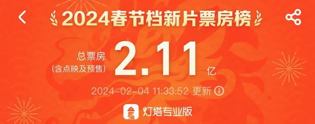 1月31日,2024年春节档新片正式开启预售。灯塔专业版数据显示,短短4天时间,8部新片目前总票房(含点映及预售)已经超过两亿。但具体到内容供给层面,今年的情况和去年有着明显差异。