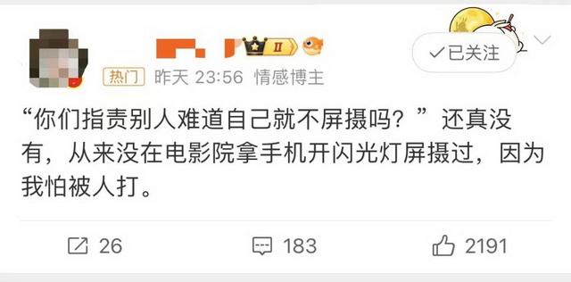 后者显然引起了更大范围的关注,毕竟明星“带头”屏摄这件事,给持正反意见的双方都提供了有力的“证据”,也让屏摄的支持者和反对者们迅速分为两个阵营,展开激烈的讨论。