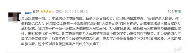 在创作层面,一个突出的特征在于,《目中无人2》相比前作加入了更多情感细腻的文戏部分。文戏与武戏的比例问题,是武侠类型或者动作类型中长期以来的创作难题,它没有绝对的标准答案,取决于创作者的利弊权衡。在豆瓣的评价中,既有用户表示第二部对人物塑造的变化很惊喜,也有用户表示打戏“相对泄气”。