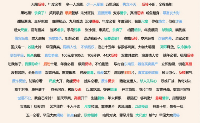而这些slogan的应用场景,经常是在影片的海报上,不过未必是官方发布的主海报,而是一些专门供应购票软件所使用的“大字报”。毒眸曾在过往的文章(点此阅读:《电影海报里的字,怎么会这么大》)中研究过这一行业现象,这些“大字报”是为了压缩用户的思考流程,帮助没有特定预期的用户达成消费决策而出现的产物。就像互联网平台的信息流广告一样,重点突出、简单直给。