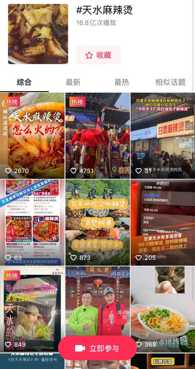 官方视频号“微游甘肃” 在3月1日发布“甘肃麻辣烫申请出战”视频后,当地照抄“尔滨”,以麻辣烫为核心,开启了“一站式”宠客服务。