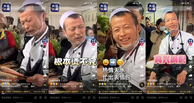 可没想到,老板的“痛苦面具”直接带动热度,不仅登上微博热搜,单条视频更是获得近80万点赞。他的热度直接引发甘肃文旅喊话:请各位老板注意表情管理。这让他后来变成了“开心营业脸”,对着镜头笑着说“高兴!高兴滴很!”。