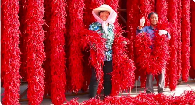 配好食材和调料,泼上滚烫的食用油,瞬间能滋出一股激人食欲的香气,这就是著名的油泼辣子。而在天水麻辣烫爆火之后,甘谷辣椒也是顺势销量大涨,近日平均每天销售约2万斤。