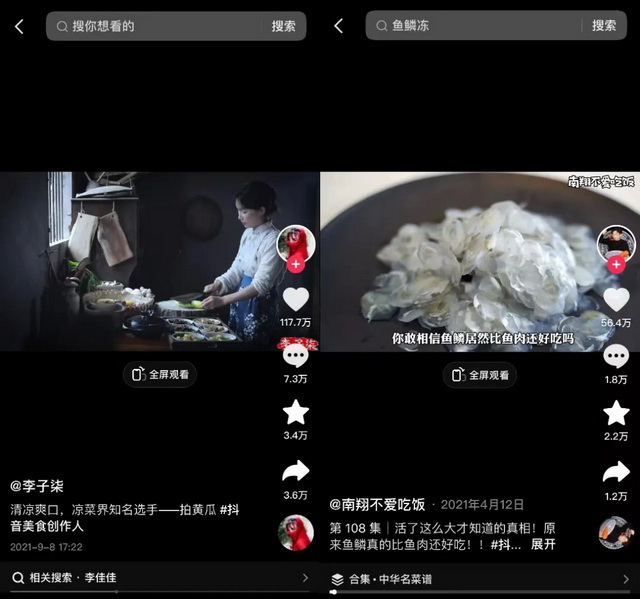 @李子柒,@南翔不爱吃饭(图源:抖音)