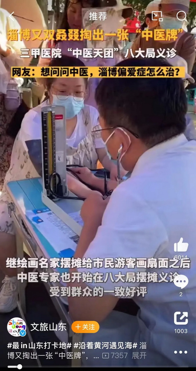 远有哈尔滨的锅包肉、湖南的小炒肉、福建的沙县小吃、内蒙古烤羊肉等,这些美食经过传播,均变成了全国性的美食,随处可吃,并没有给诞生地带来实质性流量;近有淄博,烧烤爆火后,城市推出中医一条街等匹配性城建,可是由于差异化特色不足,并未延续其热度。