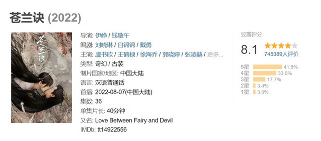 《苍兰诀》评分(图源:豆瓣)