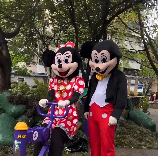 几天内,同名词条霸榜热搜,小区内,一波波游客蜂拥而至,热度直冲真实的迪士尼。官方亦嗅觉敏锐、动作及时,小区街道办连夜成立“成都迪士尼服务中心”,设置开闭园时间和岀入口通道,组织游客有序“错峰diss”;随后安排了白雪公主、米奇、米妮、玲娜贝儿等NPC和花车巡游表演。一连串动作,被网友调侃为“越来越正规了”。现在,抖音#成都迪士尼#的主话题播放量已达5.4亿次。