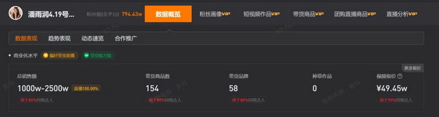 也有不少和潘雨润一样,在粉丝基数并不算多的情况下,获得非常可观带货成绩的主播。