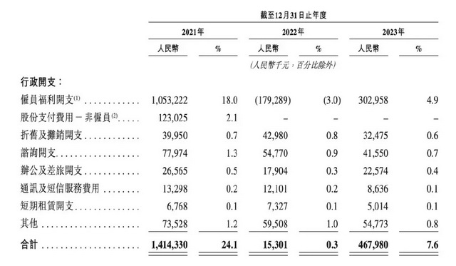 此外,值得一提的是,裁员也是喜马拉雅实现盈利的一个重要方式。除了股份支付费用的行政开支(主要包括雇员福利)占总收入的百分比由2021年的10.7%下降至2022年的9.2%及2023年的7%。