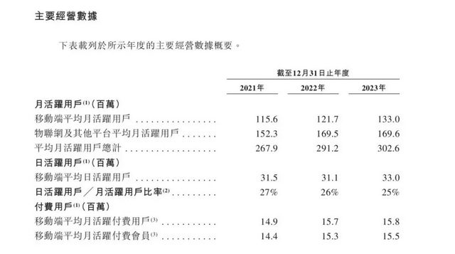 订阅收入,既是喜马拉雅的护城河,又是其收入增长的天花板。活跃用户数表现还算稳定。招股书显示,2021年-2023年,喜马拉雅平均月活跃用户数分别为2.67亿、2.91亿和3.02亿;移动端平均日活跃用户2021年3150万人,2023年为3026万人,和同行相比遥遥领先。