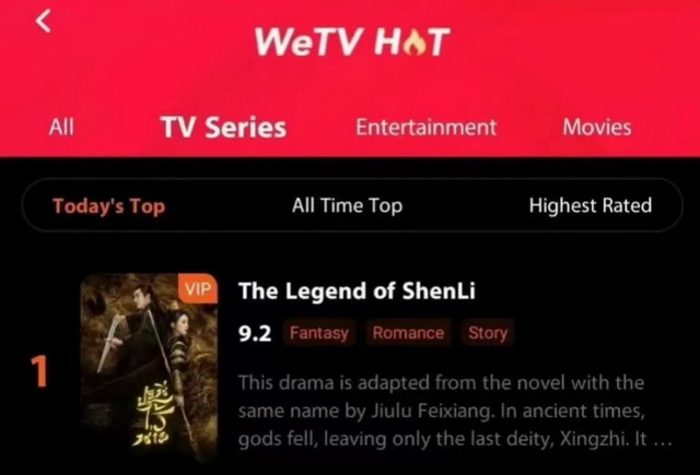 WeTV2923全球最受欢迎华语现代剧(图源:微博)