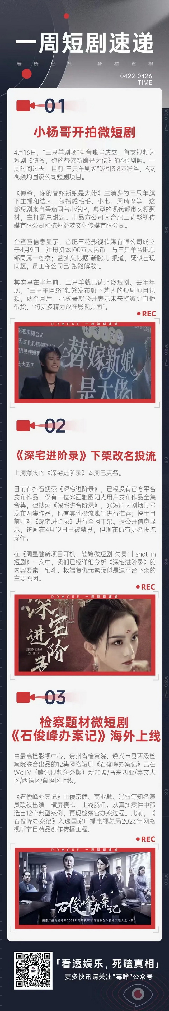 关键词:小杨哥 | 短剧 | 深宅进阶录 | 傅爷,你的替嫁新娘是大佬 | 石俊峰办案记