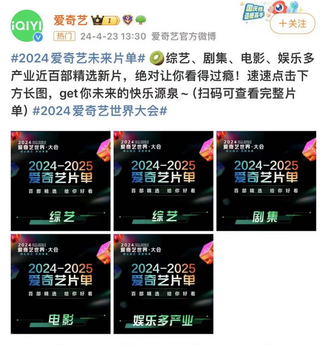 爱奇艺先公布29部重点电影片单(图源:微博)