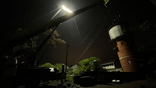 “吊大灯”是影视行业“黑话”,特指为了不耽误进度,在夜间用巨型光源打光进行拍摄。冯平的组今晚要拍的是短剧中难得一见的动作戏,主演们会在数米高的废塔上进行拍摄。