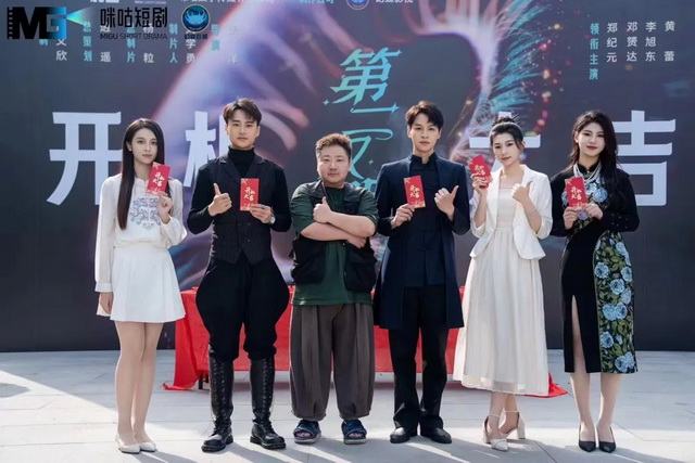 8:18分,吉时已到,《第二双眼》开机仪式正式开始,所有工作人员齐声喊出“开机大吉,充值过亿!”,这也是短剧开机的必备口号。