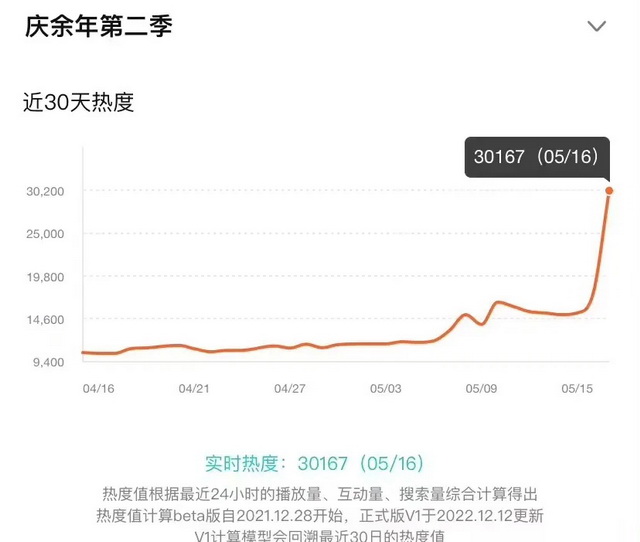似乎是等待的时间太过漫长,《庆余年2》开播后,热度就像坐火箭一般攀升,不到一小时,腾讯视频站内热度就超过了3万——去年一整年,腾讯视频热度破三万的剧也只有4部。