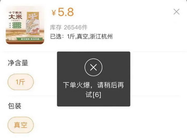 “十个勤天”1斤装粳米秒售罄(图源:微博)