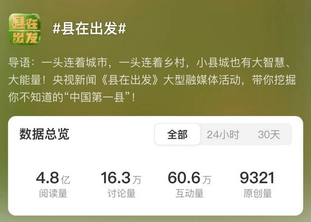 央视《县在出发》热度数据截图