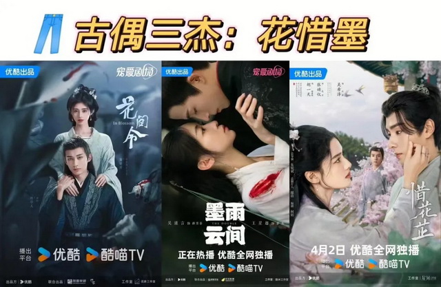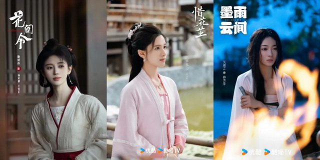 在《墨雨云间》之前,《花间令》《惜花芷》两部古装剧也都在播出后实现了口碑和热度的上扬,还与《墨雨云间》并称“古装三杰”。