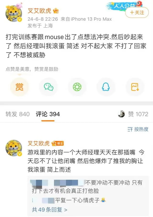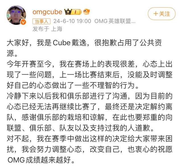 引发讨论的是前OMG电子竞技俱乐部上单选手Cube“跑路”一事。此前,夏季赛刚开赛,他突然被爆离开职业赛场,选择加入陪玩店成为陪玩。同时,FPX电子竞技俱乐部的上单选手Xiaolaohu也因为和俱乐部经理发生纠纷,闹上微博“升堂”,两件事情前后脚发生,引发了舆论场对于电竞生态的集中讨论。