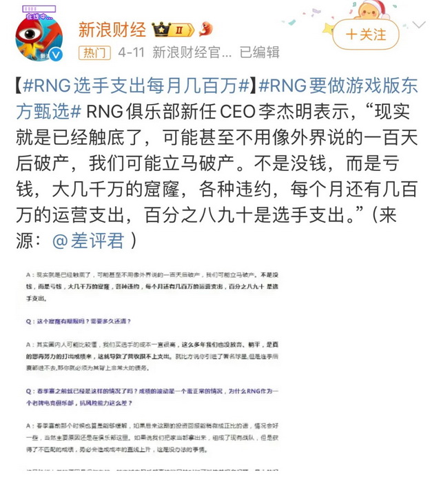 想打出成绩的队伍是如此,比如RNG,春季赛仅有一个赞助商。CEO李杰明表示,每个月有几百万的运营支出,其中90%是选手支出,俱乐部现在有“几千万的窟窿”,可以“立即破产”。选择“摆烂”的队伍IG,也是如此。在夏季赛开始前甚至传出了要拆队的传闻,而据涵艺透露,夏季赛的选手+教练阵容,加起来仅不到15万一个月。