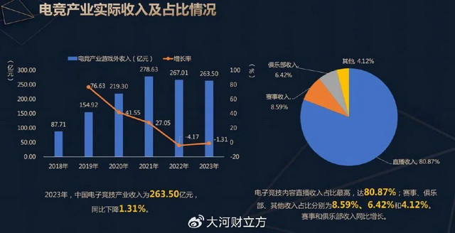 电竞产业实际收入及占比情况(图源微博:@大河财立方)