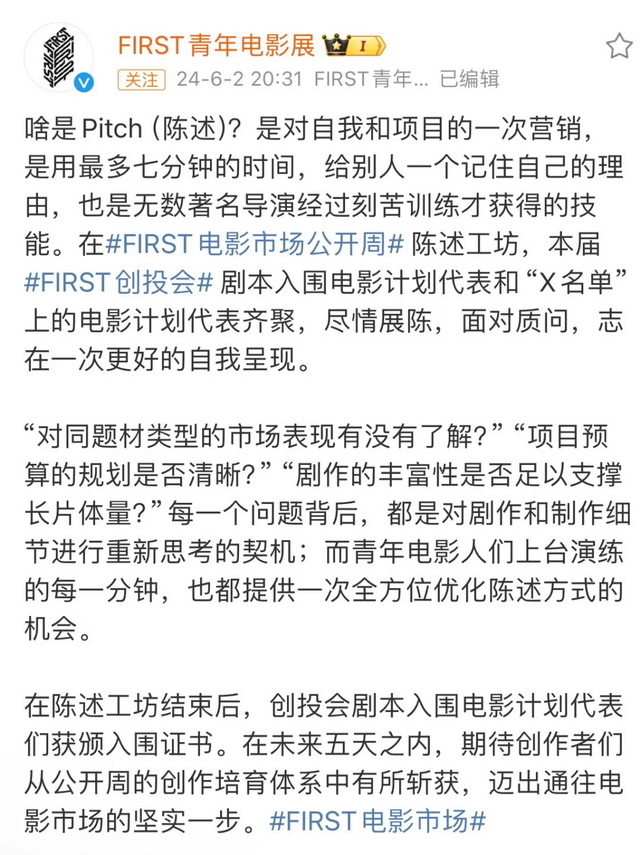 提案陈述现场(图源:微博@FIRST青年电影展)
