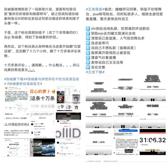 这些五花八门的负面传闻,是否全部属于塌房还有待商榷。但从粉丝划定的“塌房标准”能看出,粉丝对养成系的私德一向有更高要求。与亲友的女性好友聚餐、说队友或师兄坏话、童年时“用石头砸人”,与整容、抄袭、私联、恋爱同属于塌房。