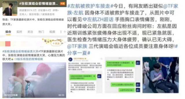 忙着与“人气”周旋的三代更不用说,长期的高压环境已经影响到练习生的身心健康。TF三代练习生左航、张极、苏新皓等人,都曾因压力过大出现心理和情绪问题,被送入医院就诊。