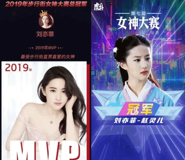 刘亦菲在“虎扑女神大赛”第四届和第七届中夺冠(图源:微博)
