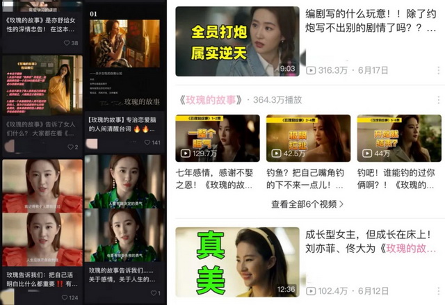 《玫瑰的故事》小红书(左)B站(右)剧评