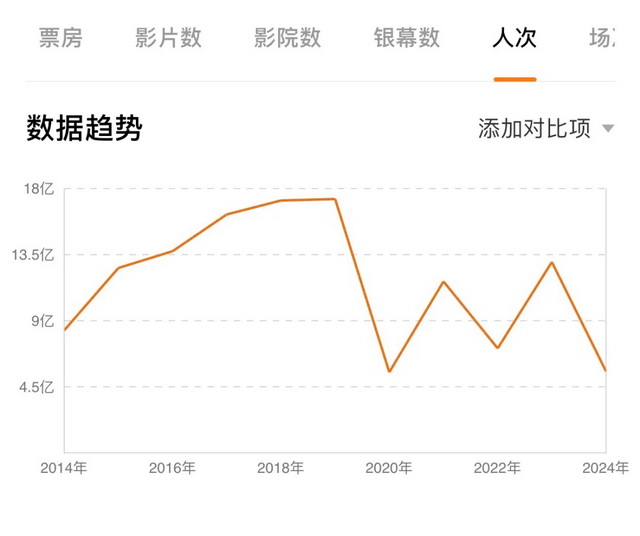 场次在增长,人次却在下降,一个残酷的事实呼之欲出:观众的观影热情持续性下降。