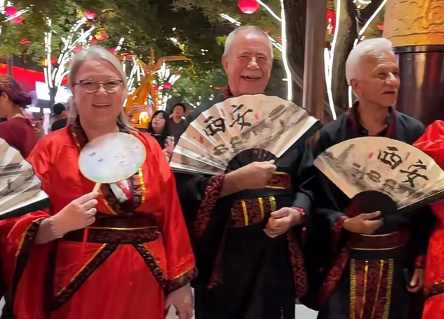 这不仅让外网上有关中国的视频井喷。现实生活中,网友们也的确感到来中国的外国人越来越多了。西安的城墙下外国人穿着精致华美的汉服游玩打卡;北京的豆汁儿店里挤满了尝鲜的外国人;上海安福路边更是外国人扎堆喝咖啡、晒太阳,种种情况都让网友发出“难道出国的人是我?”的疑问和感叹。