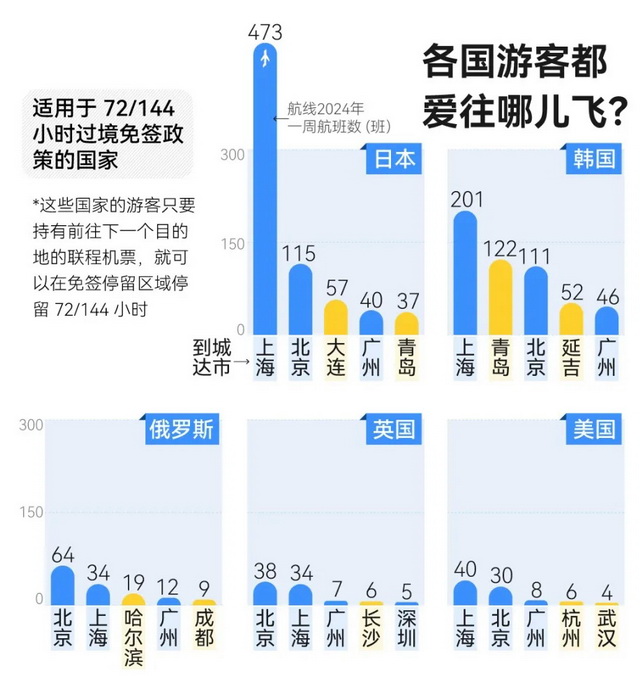 这是一项在2019年就已启动的政策,只不过当时只有成都、武汉、厦门、青岛、昆明5个城市正式实施。2023年开始,国内开放城市范围对外免签国范围进一步拓宽。目前已有18个省(自治区、直辖市)的38个对外开放口岸,对持有效国际旅行证件和144小时内确定日期、座位前往第三国(地区)联程客票的外国人员实行免签停留144小时政策。