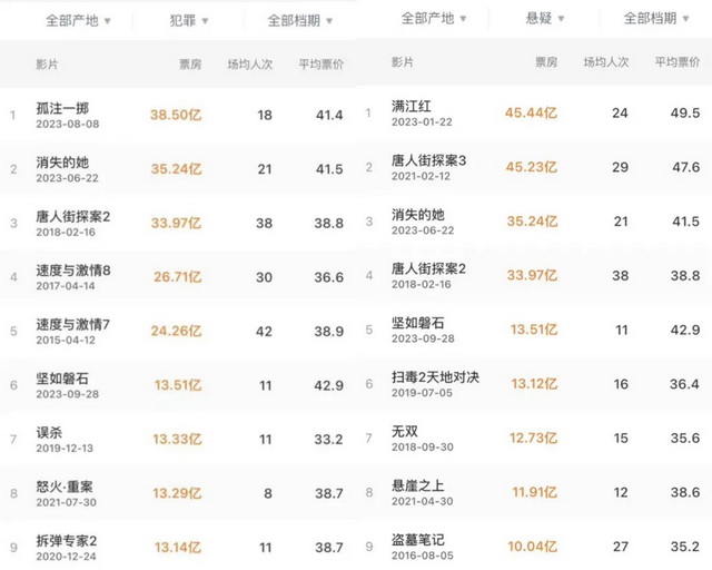 2023年犯罪、悬疑影片评分排名(图源:豆瓣)