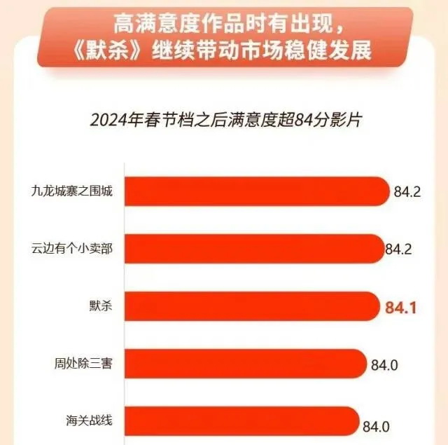 据中国电影报《中国电影观众满意度调查》显示,《默杀》的满意度高达84.1分,比《云边有个小卖部》低0.1分,比《周处除三害》高0.1分。这样的评价标准,和许多“专业观众”聚集的豆瓣相比,显然相去甚远。