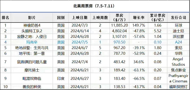 《神偷奶爸4》前五天便进账约1.23亿美元,在历年“独立日”首映的影片中名列前茅,即便媒体和观众口碑呈现两极分化,仍将受益于假期的家庭客流,全球有望向8亿美元发起冲击。