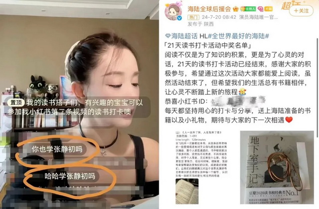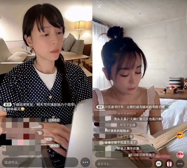 前有张静初全程直播自己的留学日常,“发疯赶due”的状态让不少留学生大呼真实;现有海陆在小红书上开启“21天读书打卡”,并同样在直播间开启读书直播。