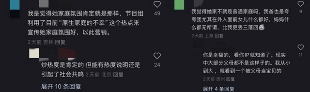 尤其对卢昱晓家庭的“过度吹捧”,让一部分网友觉得有些过于夸张。这些网友认为,卢昱晓这样的原生家庭很常见,没必要过度吹捧。但这却让另一部分网友觉得“很难过”,“你们眼中的普通是我一辈子的难以拥有”。