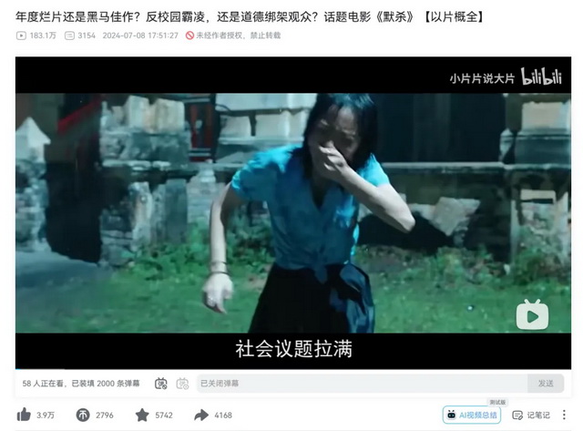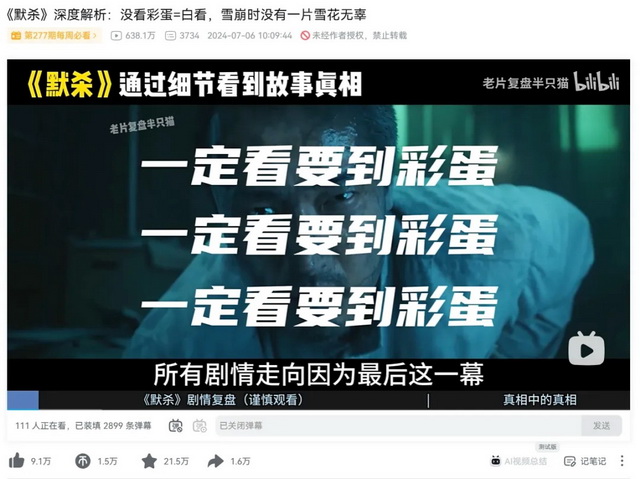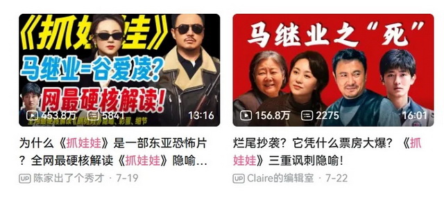 暑期档到目前为止票房最高的,被视作救市之作的《抓娃娃》《默杀》等,其实都是有很多解读空间的一类电影,在B站有不少深度解析视频登上热门。