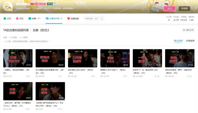 如知名剧评人、华东师范大学教授毛尖,在B站更新影视相关点评视频,从社会文化的角切入作品,言辞幽默犀利,观点精辟。这不仅仅是冲情绪博人一笑,而是在通过影视内容进行社会、文化观察。目前毛尖在B站已经有了6篇播放破百万的爆款视频,粉丝超过70万。