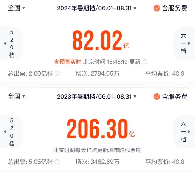 暑期档目前未及去年一半