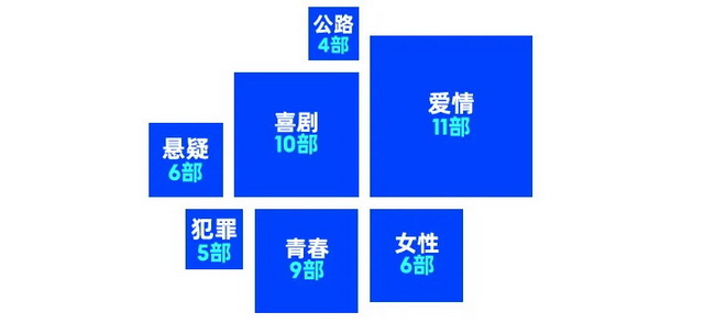 从类型的角度细分来看,今年产业放映的类型三甲是爱情、家庭、喜剧,但这三个类型之间却呈现出了诡异的“不可能三角”,只有一部影片类型囊括喜剧+家庭,四部影片为喜剧+爱情。这或许在某种程度上体现出了青年影人对于自身与世界的矛盾视角,他们对于家庭、爱情有着强烈的倾诉、表达欲,但是又对其有着悲观的态度、看法。