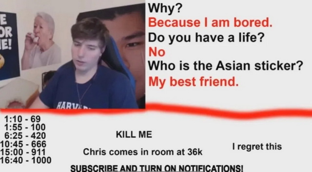 他起码自2016年就开始在推特上与一位叫shadman的画师多次互动,并转发后者的作品。而这位画师是一位臭名昭著的非法内容制作者,其作品广泛涉及强奸幼女和幼女猥亵等内容,Kris还曾把shadman的一幅画直接挂在宿舍,在视频中堂而皇之地出镜。更关键的是,Kris对一位当时还是未成年的网友,在聊天时使用过大量性骚扰性质的词句的丑闻也被曝光出来。以此为起点,此后,关于Mr.Beast的争议和丑闻逐渐在舆论场上被引爆。
