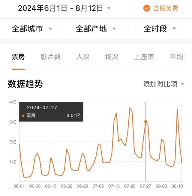 暑期档票房走势(图源:灯塔专业版)