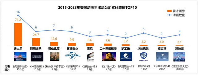 拓普数据《2023年中国动画电影市场研究报告》显示,目前国产动画电影票房集中度较高,过亿元票房动画以15%至20%的数量,给动画市场贡献了75%至85%的票房。